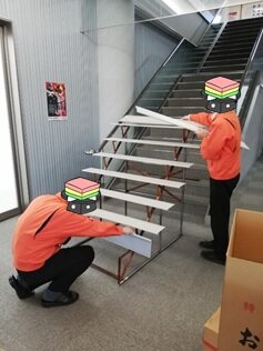 まず男性チームがひな壇を設置します。時間がかかると思っていたのですが、毎年のことだからかあっという間に終わりました。