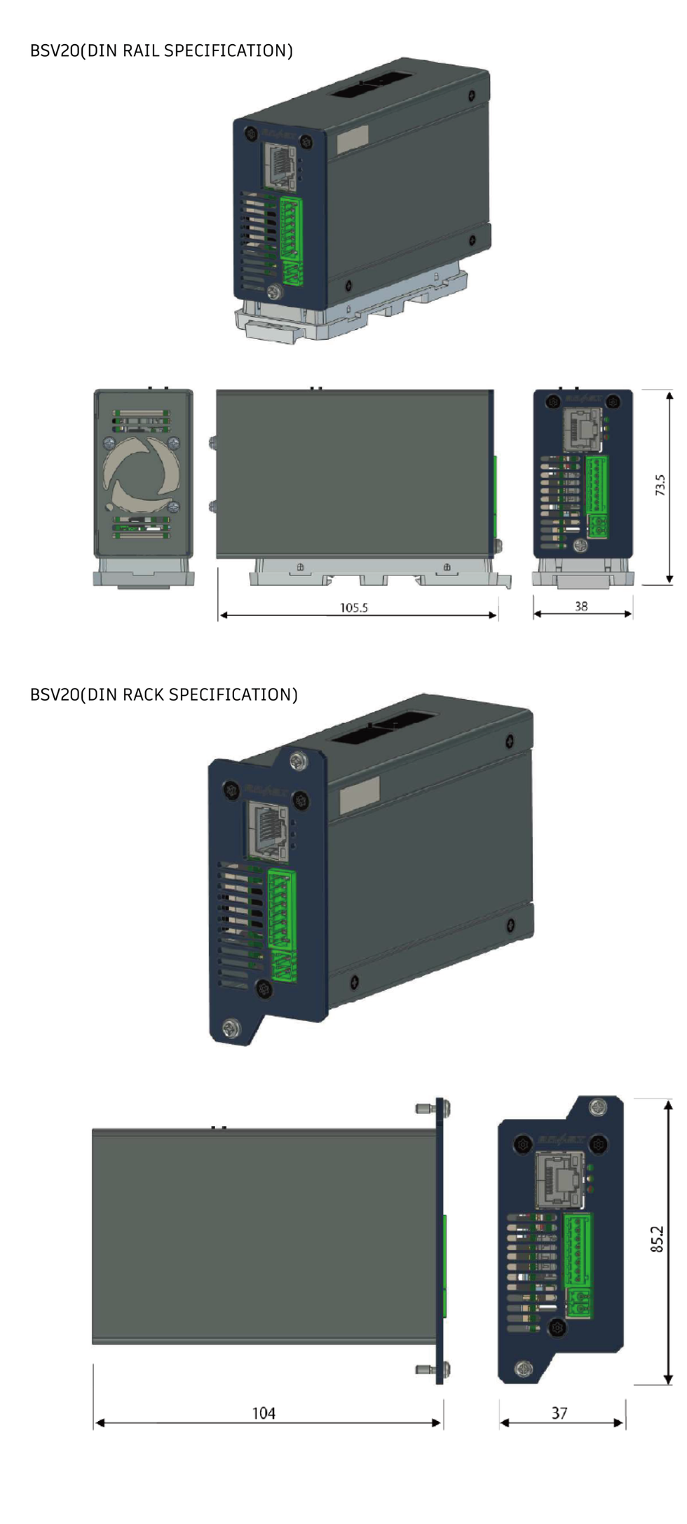 Dimension BSV20:37.0mm(W))×72.5mm(H)×104mm(D) (the body , includes DIN rail mounting brackets)