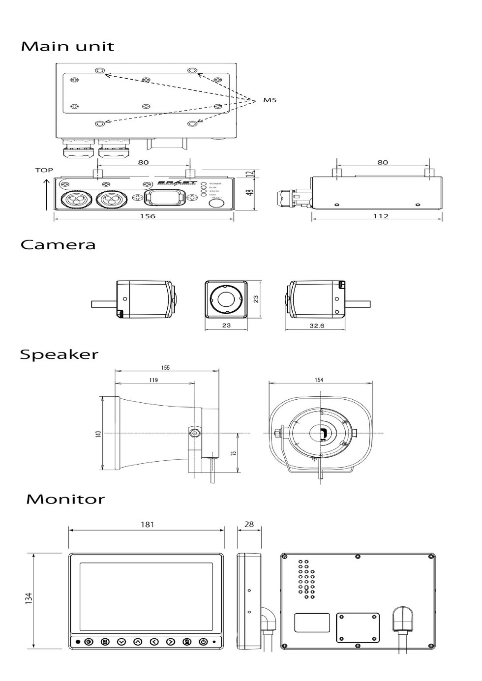 | Camera input | NTSC:4ch. (switch front 2ch. and rear 2ch. based on the direction of movement) mounted angle: -35° ~ -55° |