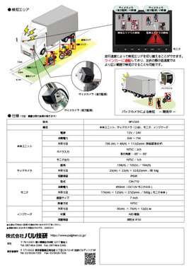 検知範囲 | 前方7m~後方12m ※カメラ設置場所によって検知範囲は異なる可能性があります |